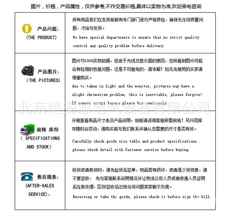 1.我公司對生產(chǎn)的全部產(chǎn)品實行“三包”,保證產(chǎn)品采用較佳材料和一流工藝,符合合同規(guī)定的質(zhì)量﹑規(guī)定和性能要求。保證其合同設(shè)備經(jīng)過正確安裝﹑合理操作和維護(hù)保養(yǎng),在合同設(shè)備使用期內(nèi)運轉(zhuǎn)良好,在規(guī)定的質(zhì)量保證期內(nèi),對由于設(shè)計工藝或材料的缺陷而造成的故障負(fù)責(zé),免費負(fù)責(zé)修理或更換有缺陷的電器元件。