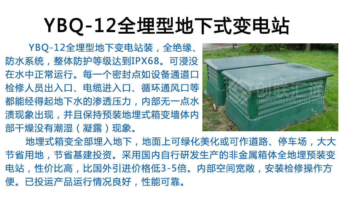 地埋式箱變主要由地埋式變壓器和廣告燈箱式的戶外開關(guān)設(shè)備組成。地埋式變壓器是由變壓器、高壓負荷開關(guān)、熔斷器等組合在一起的一種新型的緊湊型的變電設(shè)備,它安裝在地坑中,不占用地表空間,而且能在一段時間內(nèi)浸沒在水中運行。廣告燈箱式的戶外開關(guān)設(shè)備為集廣告牌及戶外開關(guān)設(shè)備為一體的混合結(jié)構(gòu),安裝在地面。箱體內(nèi)部為戶外高低壓配電柜,兩側(cè)為廣告燈箱,具有極佳的視覺效果。